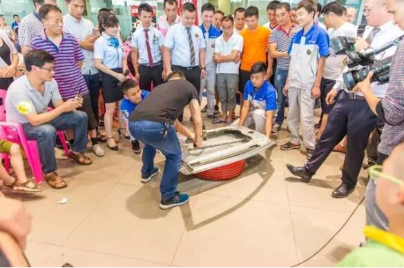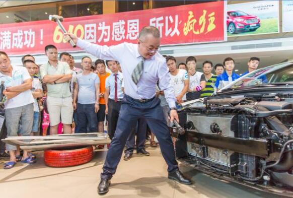 特地請上一名想買(mǎi)車(chē)的客戶(hù)上來(lái)瘋狂砸車(chē),
