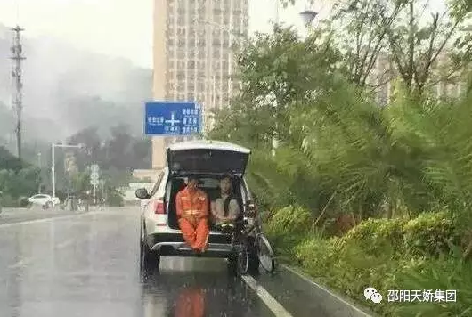 大雨中,一位好心的小伙開(kāi)車(chē)路過(guò),發(fā)現環(huán)衛工人沒(méi)有地方躲雨,就主動(dòng)邀請雨中的環(huán)衛工人上車(chē)避雨。環(huán)衛工人怕自己弄臟車(chē)子,不肯答應,后來(lái)小伙子就和他一起在后備箱里避雨。