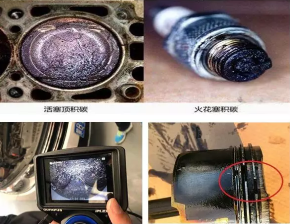 當燃油中的膠質(zhì)粘附在節氣門(mén)、油路管路、火花塞等部件中,經(jīng)過(guò)發(fā)動(dòng)機反復高溫的作用下,不斷累積在噴油嘴、氣門(mén)、活塞、進(jìn)氣道等部位就形成了硬質(zhì)積碳。