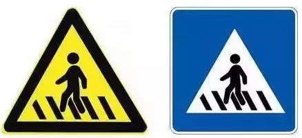 明明就是“膚色”不同,卻被劃分成了兩種類(lèi)型的交通標志。黃色背景表示警告;藍色背景表示指令、遵循。