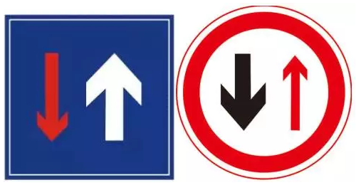 會(huì )車(chē)先行:表示車(chē)輛會(huì )車(chē)時(shí),有條件避讓的車(chē)要讓無(wú)條件避讓的車(chē)先行通過(guò)。此時(shí),紅色箭頭行駛方向的車(chē)輛要停車(chē)讓行,白色行駛箭頭方向車(chē)輛要先行。